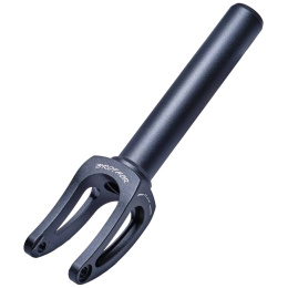 Super tenedor de la marca Brother Scooters con un peso total de 303 gramos . La horquilla está hecha para sistemas de compresión HiC y SCS. El material de la horquilla es Aluminio 7003 con una resistencia de T6 . La horquilla está hecha para ruedas con dimensiones máximas de 120 mm a 30 mm . El tenedor no tiene rosca y es de una sola pieza . Hay un eje de 8 mm en la horquilla. Encontrará un tornillo de compresión de 50 mm en el paquete.
