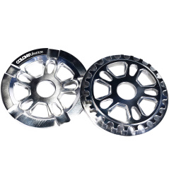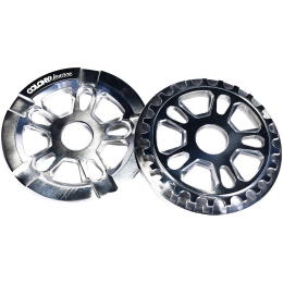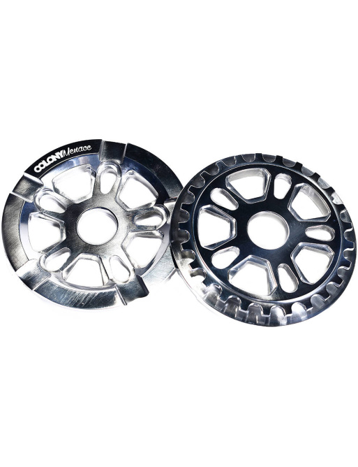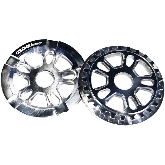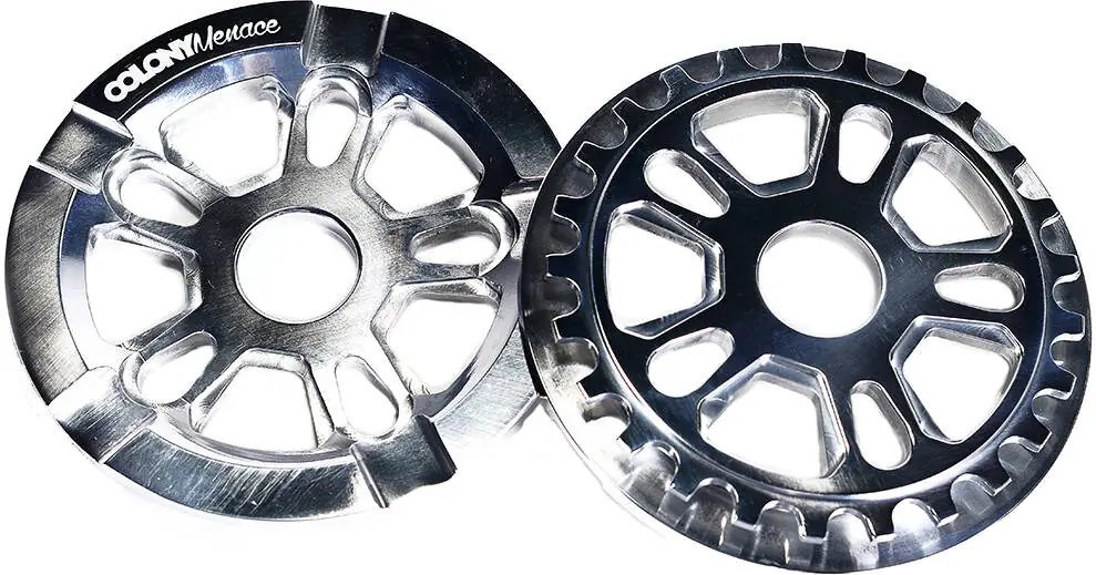 El Colony Menace Guard es un convertidor de bicicleta BMX freestyle de alto rendimiento. Disponible en versiones de 25T y 28T. Si desea alcanzar velocidades máximas más altas, elija un plato más grande con más dientes. Sin embargo, si desea un pedaleo más fácil y una mejor aceleración, debe elegir un plato más pequeño. Este desviador Colony está diseñado con un orificio central de 24 mm y un orificio para tornillo, pero con los adaptadores incluidos también es adecuado para el montaje de 19 mm y 22 mm.