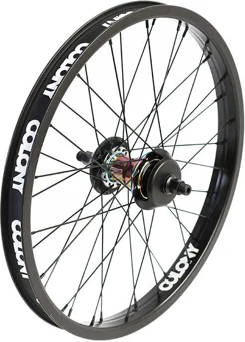 Esta es la rueda trasera Colony Pintour 20" para bicicletas BMX freestyle. Colony diseñó la Pintour 20" con una llanta de doble pared para ciclistas que necesitan una rueda trasera que pueda manejar impactos verticales y laterales en trucos y saltos. El buje freecoaster te permite andar hacia atrás sin pedalear, lo que lo hace ideal para dominar los trucos de fakie. Los rodamientos sellados son de bajo mantenimiento y resistentes a la suciedad, lo que hace que esta rueda trasera Colony sea ideal para uso en exteriores.