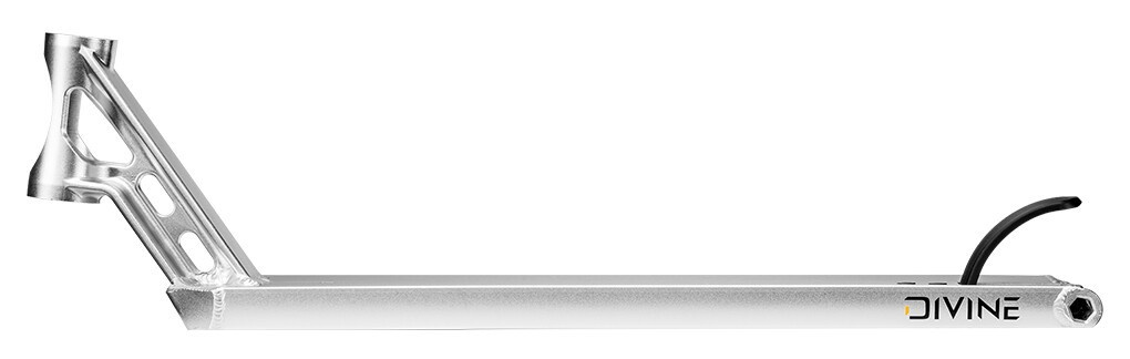 Excelente tabla de calle del fabricante checo Divine. Recomendada para todos los riders de calle que quieran una tabla de calidad, ligera y de grandes dimensiones. La placa tiene un freno de plástico que tiene tornillos para Allen 6. Esto significa que no podrá extraer fácilmente la cabeza del tornillo. Sus dimensiones son unos preciosos 580 mm de longitud y 153 mm de anchura. El cuello de la placa es de una sola pieza, forjado. Esto hace que el cuello sea más resistente y no se agriete en unos auriculares con un bonito diseño. La placa es para ruedas de hasta 120 mm con una anchura de 24 mm