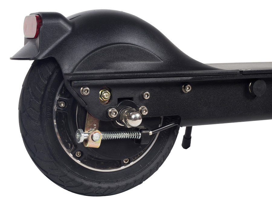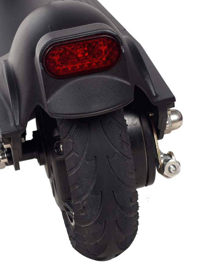 Los neumáticos con un diámetro de 8 \ "(hinchables delanteros, fijos traseros) superan fácilmente incluso irregularidades menores. El amortiguador delantero duradero también reduce las vibraciones desagradables en el manillar. Las ruedas están protegidas por guardabarros.