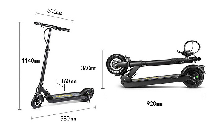 Dimensiones del scooter plegado: 92x18x36 cm.
