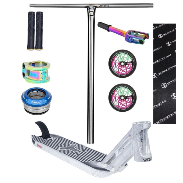 Nadupaná custom freestyle koloběžka, která kombinuje top díly od značek Triad, Oath a Divine. Skvělá volba pro jezdce, kteří hledají kvalitní parkový setup s maximální kontrolou, nízkou hmotností a stylovým vzhledem. Díky komponentům, jako jsou kolečka Oath Bermuda Jamie Hull, deska Triad Psychic nebo řídítka Divine CrMo, dostaneš koloběžku připravenou na každou session.