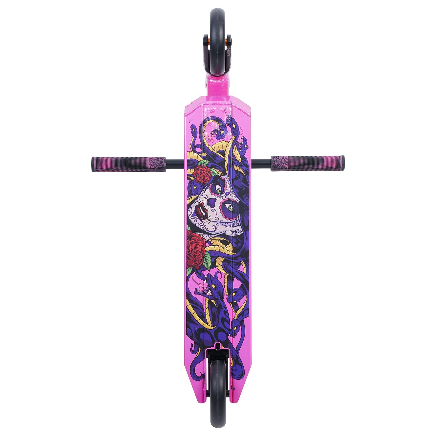 El patinete freestyle Triad Infraction es ideal para ciclistas intermedios y para padres que buscan calidad y que no quieren gastar mucho dinero en un patinete. No solo el precio sino también los componentes son excelentes para este scooter. P.ej. La tabla está hecha de aleación de aluminio de la serie 7000, ruedas de 110 mm con centro de aluminio y tiene un freno exclusivo Fend off (2 en 1).