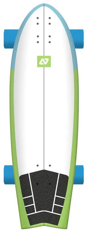 Vortex je vybaven vysoce výkonnými trucky pro surfování a přilnavými pouzdry 83A, takže napodobuje pocit surfování na souši. Jeho citlivé trucky a plynulý mechanismus otáčení umožňují ostré a kontrolované úkroky, zatímco předgripovaná paluba zajišťuje bezpečné a pohodlné držení těla.