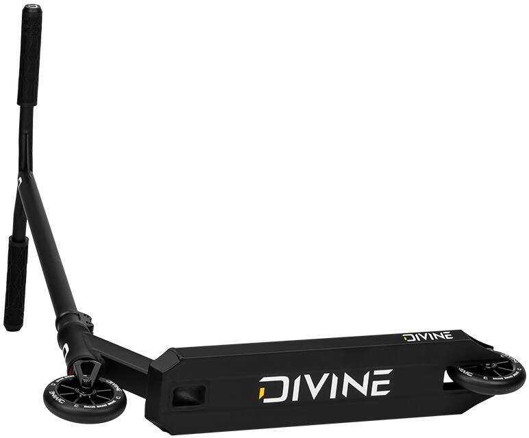 ¿Eres un rider intermedio con una altura entre 130 - 160 cm y quieres un scooter freestyle para skatepark? Tenemos una solución para ti Divine Loki es una gran elección ya que pesa 3,6 kg y tiene unas dimensiones estupendas. El scooter está equipado con un manillar de acero con forma de Y que evita que se doble y dispone de cómodas empuñaduras. El manguito tiene 2 tornillos y que encaja perfectamente en la horquilla de aluminio de una sola pieza. El funcionamiento suave y especialmente silencioso del scooter está garantizado por los cojinetes industriales, que están integrados en el cuello de la tabla. La tabla es ligera y se puede montar tanto en skatepark como en arroyo básico. La tabla tiene un freno de pie de plástico. El scooter incluye un par de ruedas de radios de 110 mm con centros de aluminio.
