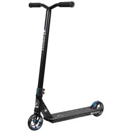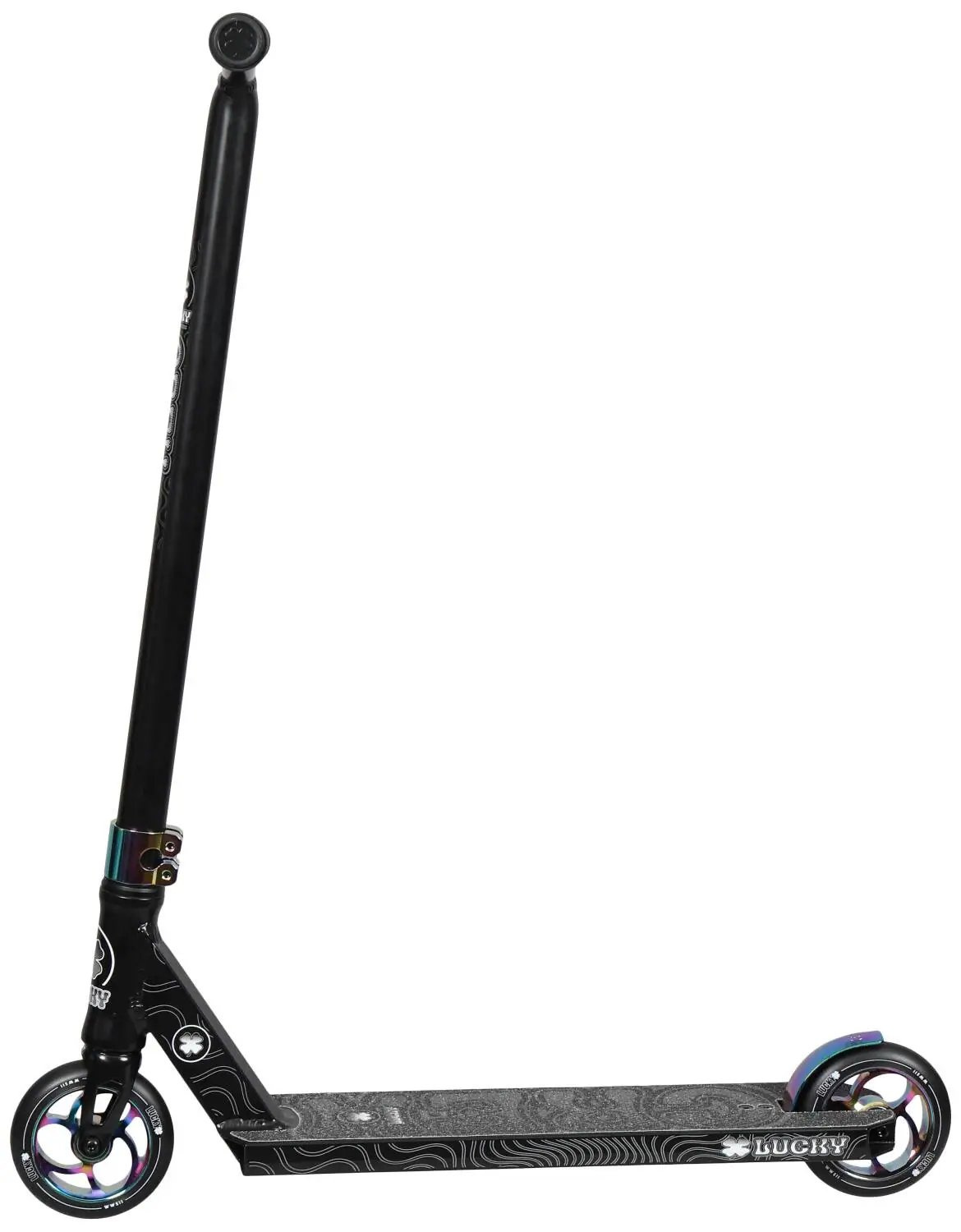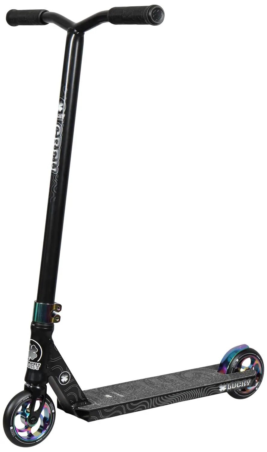 ¡El nuevo scooter Lucky Crew finalmente está aquí! ? Más bonito , más ligero y más fuerte ! El scooter está diseñado para principiantes mayores y ciclistas intermedios en el parque de patinaje . ?Pesa solo 3,3 kg ! El scooter tiene un manillar en Y de aluminio que mide 584 mm de alto y 559 mm de ancho . La tabla tiene una longitud de 480 mm y un ancho de 114 mm, lo que es excelente para trucos en el parque de patinaje . El scooter está equipado con un par de ruedas de 115 mm con centro de radios de aluminio y un ancho de 24 mm .