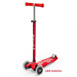 Maxi Micro Deluxe LED Red es un patinete seguro, estable y divertido en color rojo, diseñado para niños mayores, juniors y adolescentes con una capacidad de carga recomendada de hasta 50 kg.