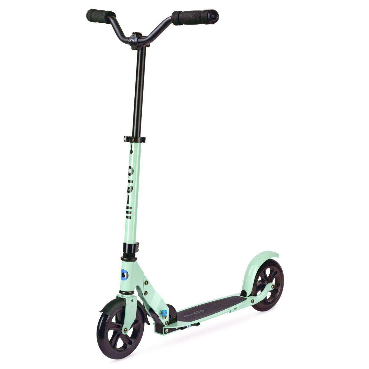 Micro Speed Deluxe Clay es un scooter plegable universal en color pistacho. Es apto para niños, jóvenes y adultos. Gracias a las ruedas de 180 mm y al manillar ancho regulable, es un scooter rápido y cómodo apto para la conducción normal en recorridos cortos, medios y largos.