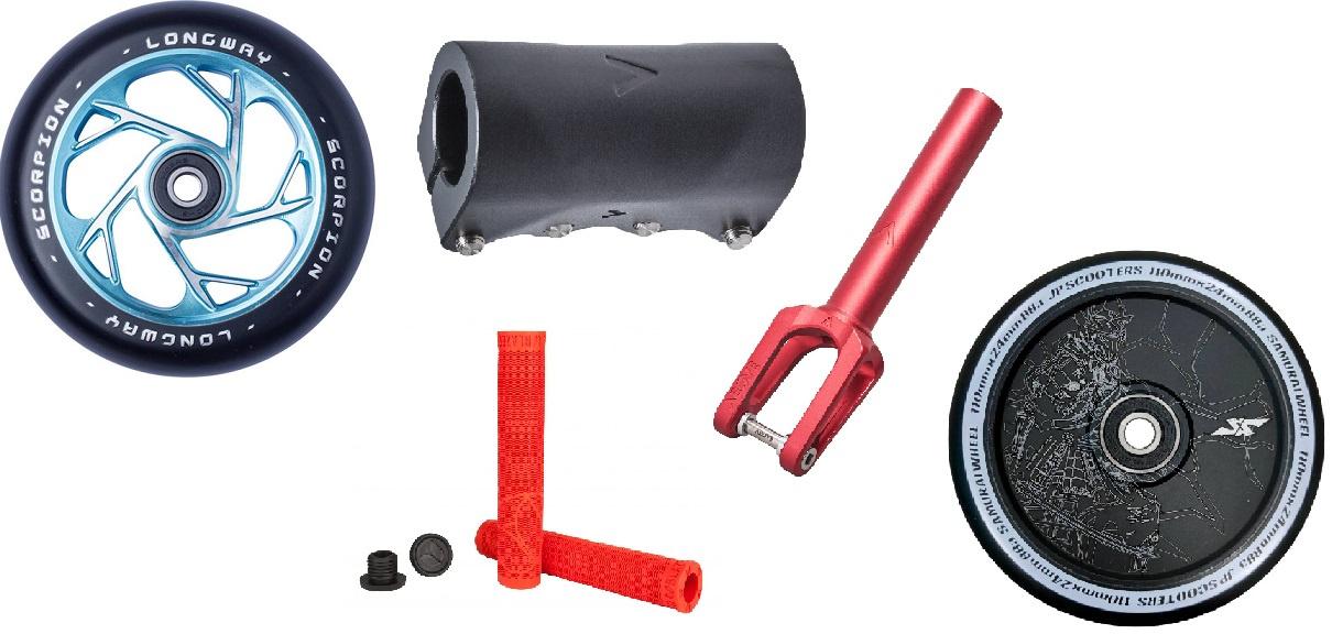 Výborná kolečka od Japonského výrobce JP Scooters. Design Samurai je naprosto jedinečný. Kolečka mají dutý střed.