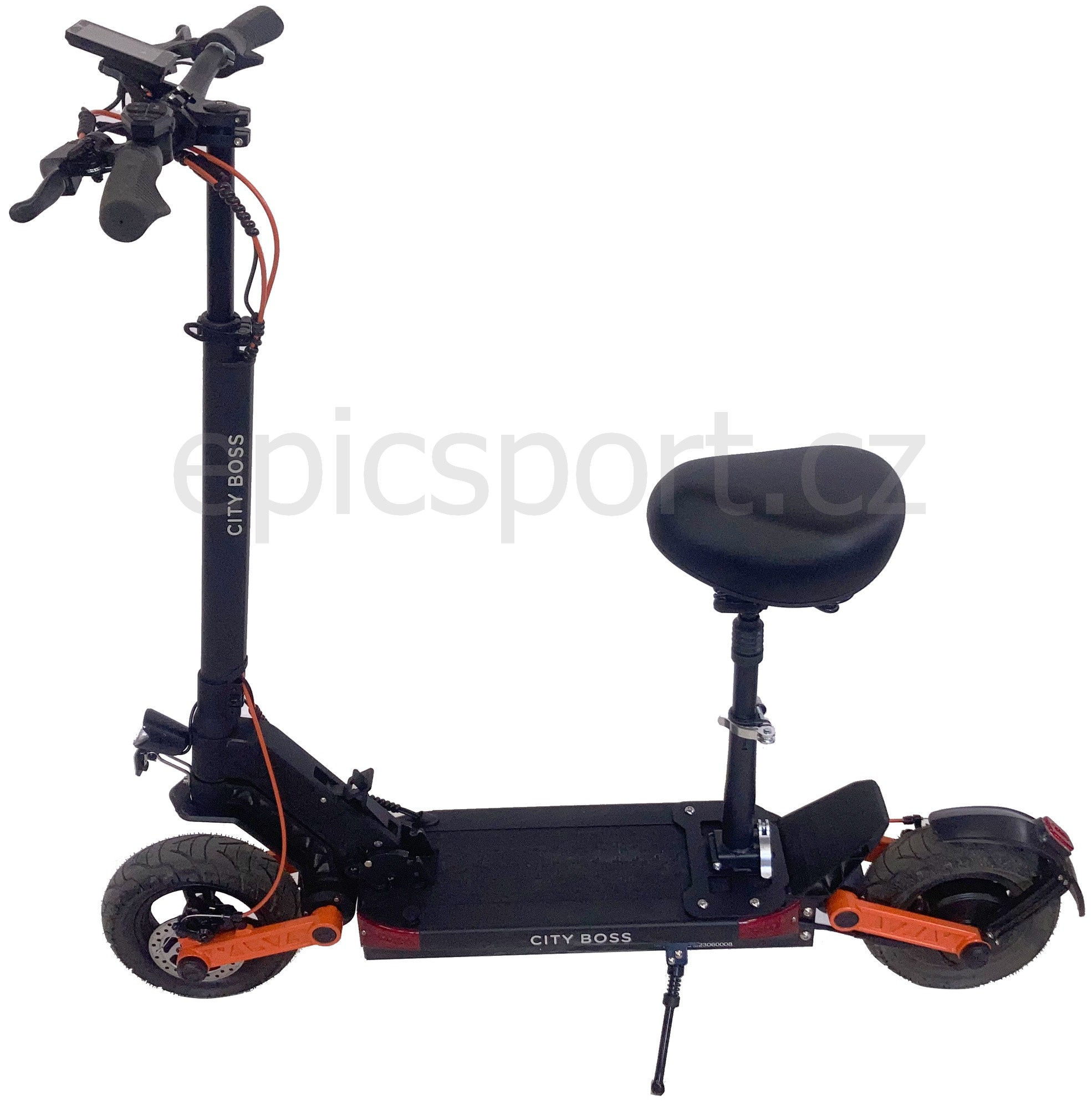 S přídavným sedlem hravě zvládnete i delší cesty bez únavy. Je kompatibilní s modely elektrických koloběžek City Boss K600 / K1600 a K1600L, které již mají na montáž sedla přípravu z výroby - 4 otvory v rámu.