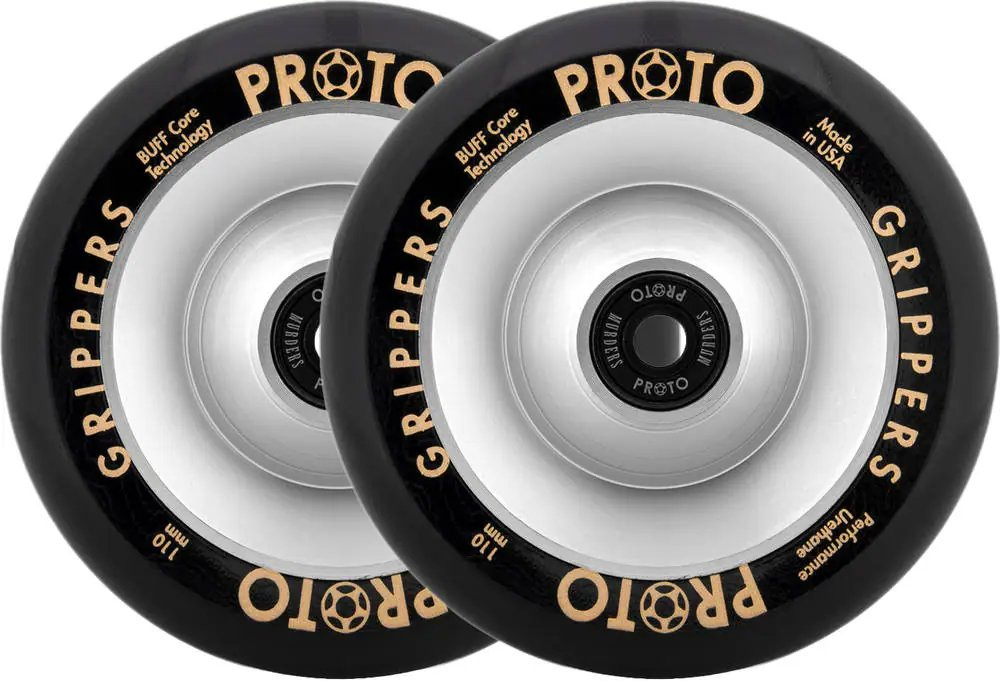 Más suave, más suave y más rápido. Así es como formularíamos las ruedas Gripper de la legendaria marca PROTO. Las ruedas están hechas en los Estados Unidos . La tecnología Buff Core, que ayuda a absorber el impacto, reduce la posibilidad de rodar fuera del volante y el viaje en sí es más cómodo . El centro de la rueda es de aluminio . Además, hay orificios más pequeños en el compartimento de los rodamientos para que los rodamientos se puedan extraer fácilmente .