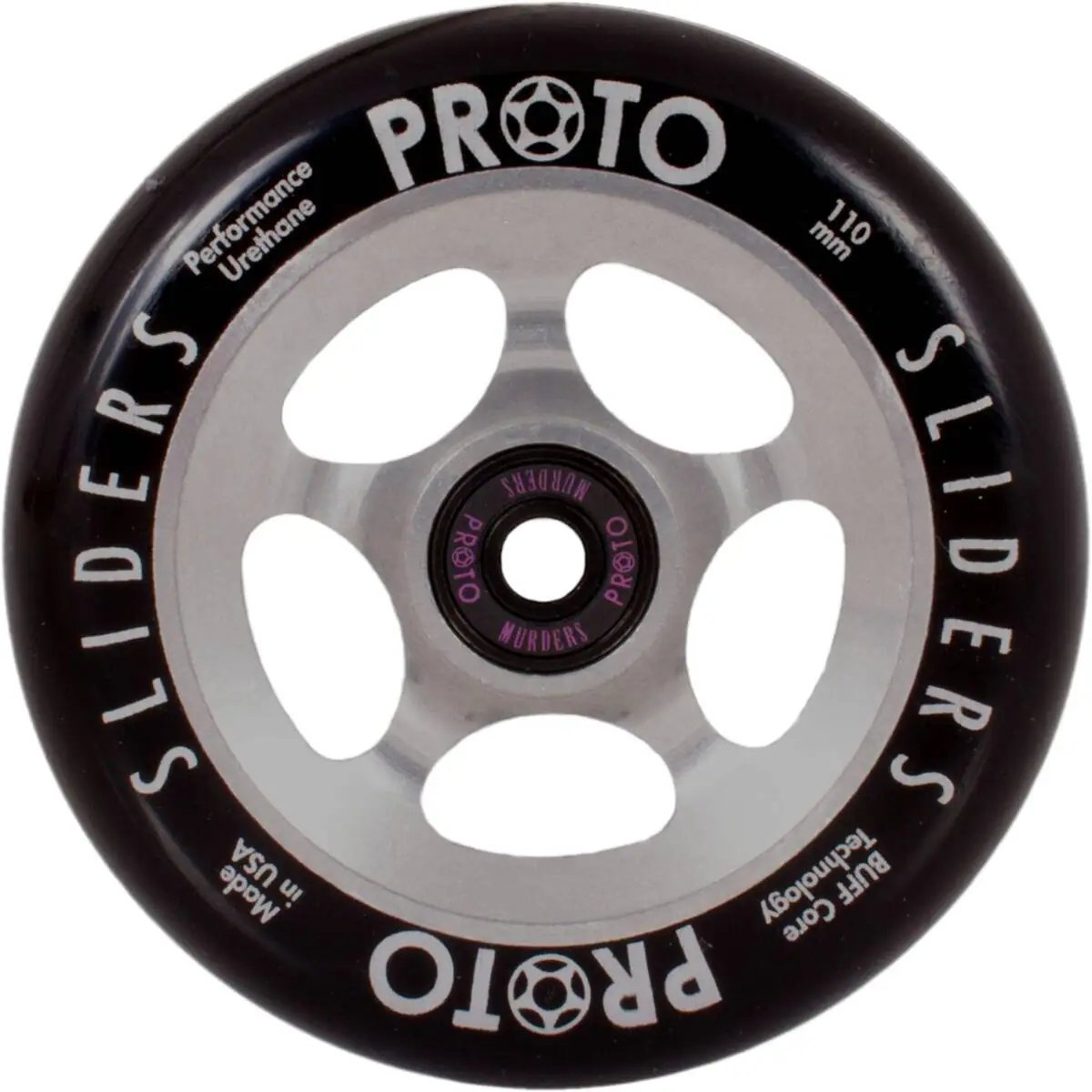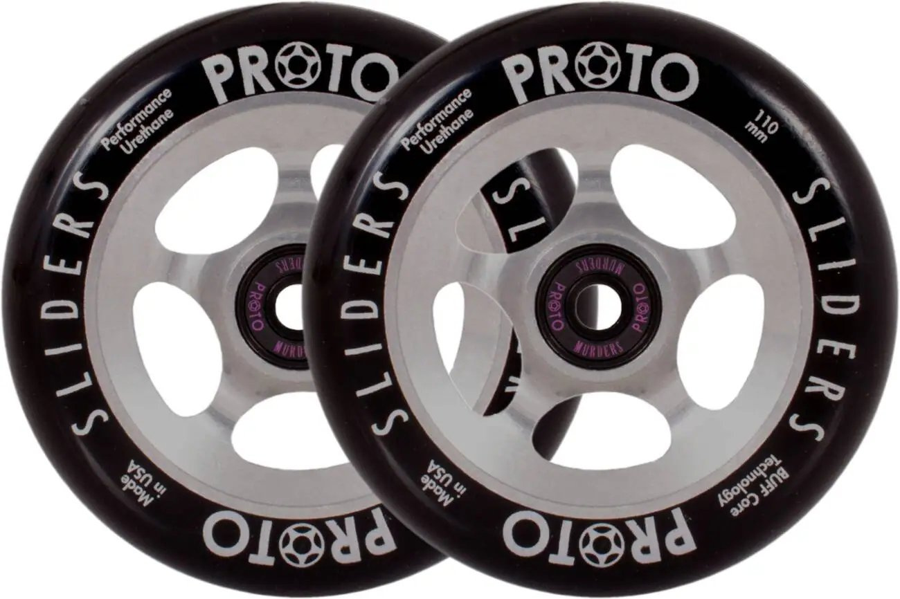 Más duro, más fuerte y más duradero. Así formularíamos las ruedas Slider de la mítica marca PROTO. Las ruedas se fabrican en EE . UU. Gracias a la tecnología de núcleo BUFF , que ayuda a absorber los golpes, se reduce la posibilidad de que la rueda se desviste y el viaje en sí es más cómodo . El centro de la rueda es de aluminio . También hay orificios más pequeños en el espacio del cojinete para que los cojinetes puedan sacarse fácilmente.