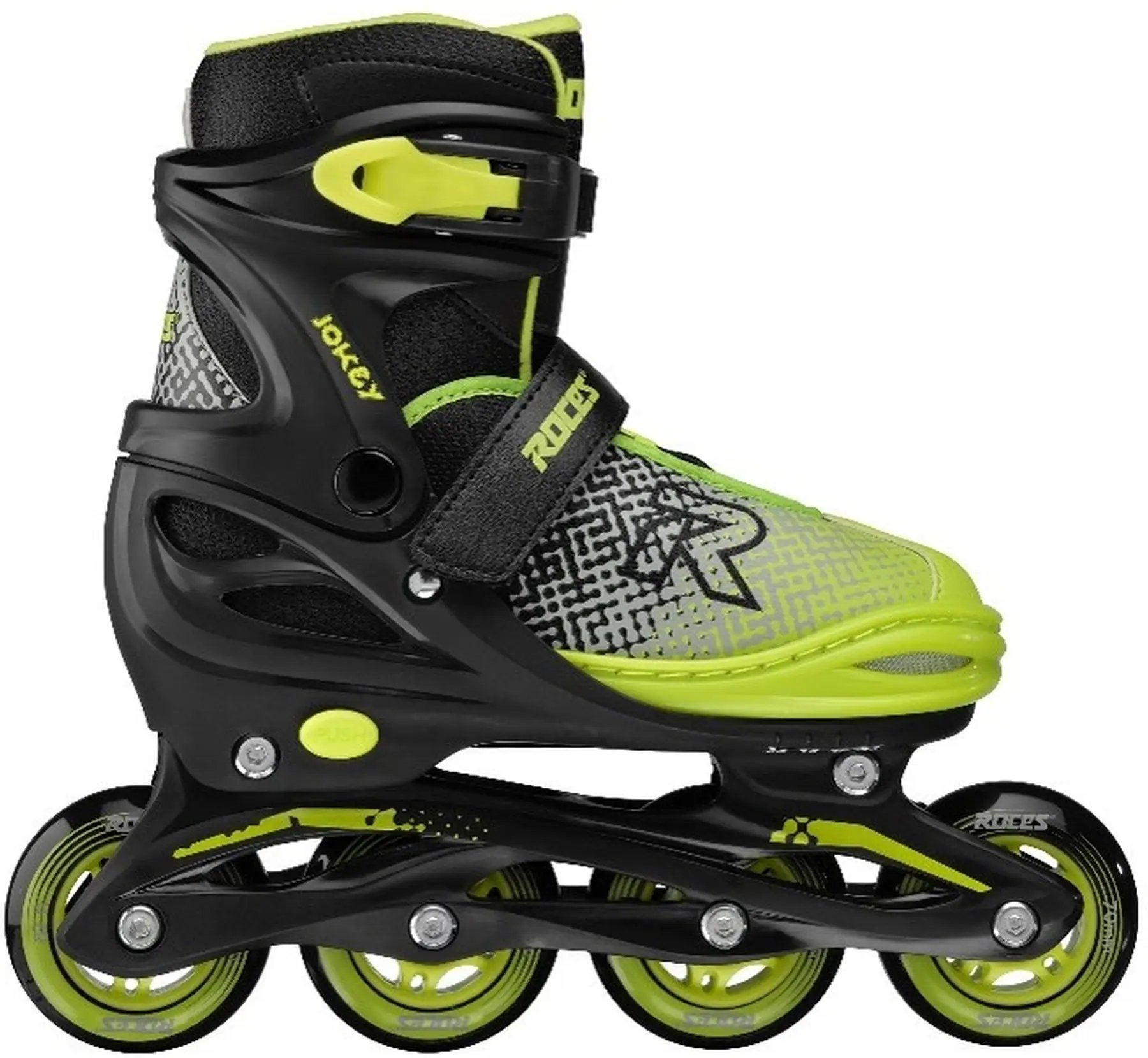 Dětské inline brusle Roces Jokey X jsou ideální pro mladé začínající bruslaře. Díky nastavitelné velikosti boty mohou růst s nohou vašeho dítěte. Měkká bota a pěnová vložka poskytují pohodlí a oporu, zatímco pružná manžeta nabízí široký rozsah pohybu a vysokou boční oporu. Plochý rámu nastavení a ložiska ABEC-3 zajišťují hladkou a stabilní jízdu.