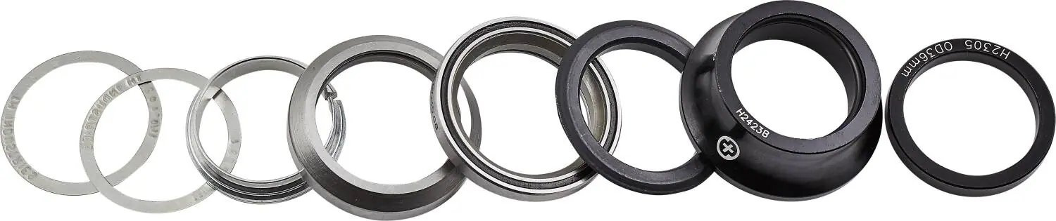 Montaje integrado con rodamientos FSA de buen funcionamiento, tapa superior de color y un espaciador de 5 mm en el paquete.