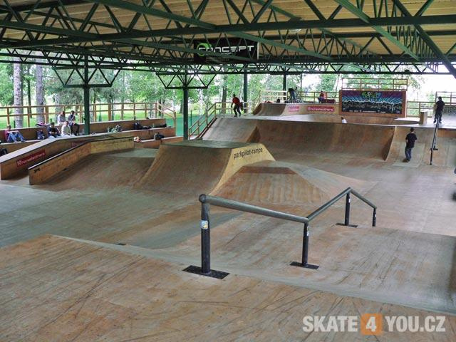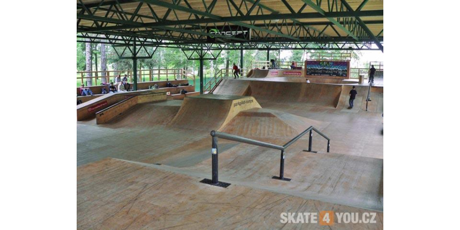 Skatepark se nachází v Šimkovejch sadech v krásném prostředí. Skatepark je pod střechou. Takže pokud prší můžete si vpohodě zajezdit.