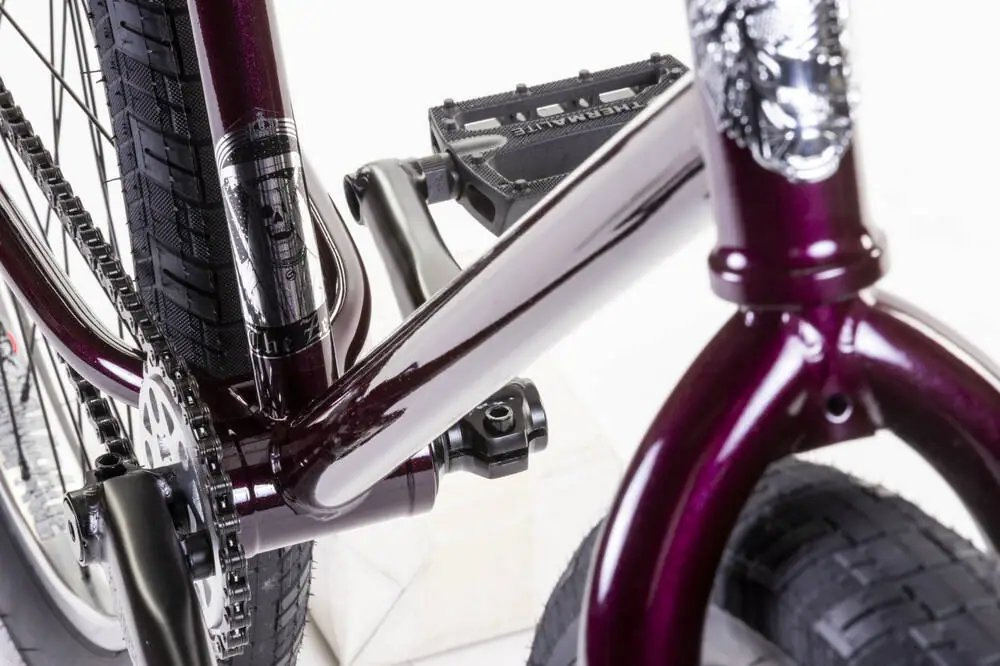 Está fabricado con rodamientos totalmente sellados y 100 % de tubos de cromoly 4130, listo para soportar todo el abuso al que lo someterá. Los pedales Thermalite con base de nailon, las bielas tubulares de 175 mm y el asiento pivotante XL la hacen súper cómoda y fácil de manejar.