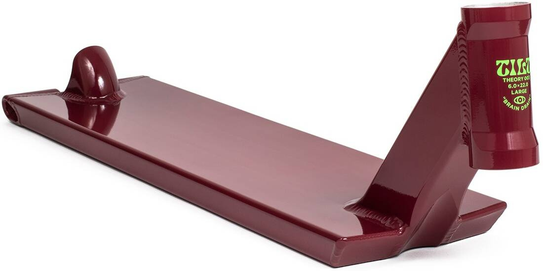 ¡La nueva generación de registros de Tilt Theory está aquí! La teoría es uno de los mejores registros callejeros. Tiene forma cuadrada y el llamado "Crook Nook" delante del tablero. Esto le facilitará las sonrisas nasales .La junta no tiene grindrails, lo que hará mucho más fácil para que usted viaje de las tuberías. La placa tiene un freno integrado, soldado. La llamada montas sin descanso . ¡Las ruedas de hasta 120 mm con un ancho de 24 mm y 30 mm pueden caber en el tablero! El mástil de la placa es de dos partes y para auriculares integrados.
